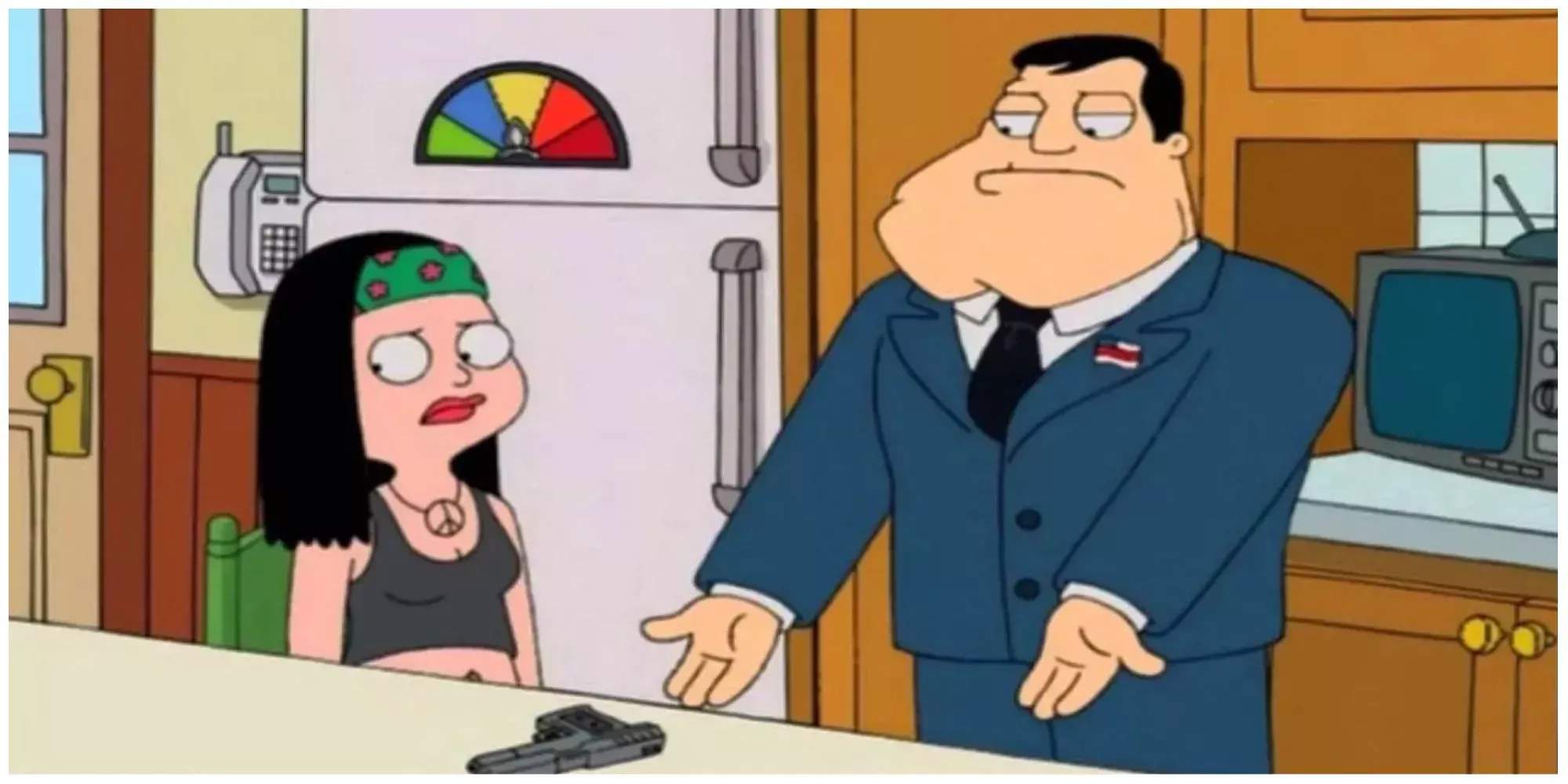 AmericanDad se centra en el espía de la CIA Stan Smith y su familia en Langley Falls, Virginia. Como republicano conservador acérrimo, Stan mantiene discusiones políticas con su hija liberal, Hayley, desde el primer episodio de American Dad.
