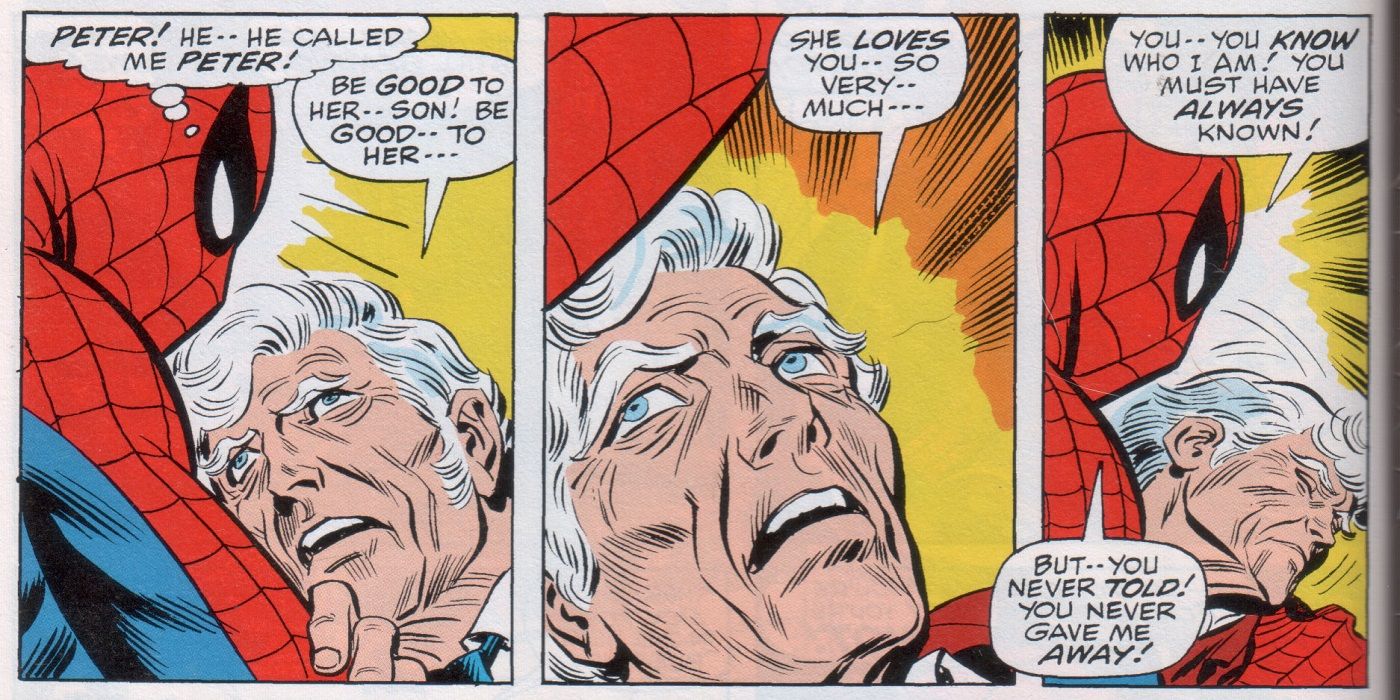 Un día, mientras el Hombre Araña y el Doctor Pulpo luchaban en los tejados de Nueva York, un trozo de escombros de la batalla cayó de un edificio y habría matado a un niño si no fuera por las acciones del Capitán Stacy. A costa de su propia vida, el capitán Stacy apartó al niño del camino y, mientras moría, le reveló a Spiderman que sabía que el héroe era en realidad Peter Parker.