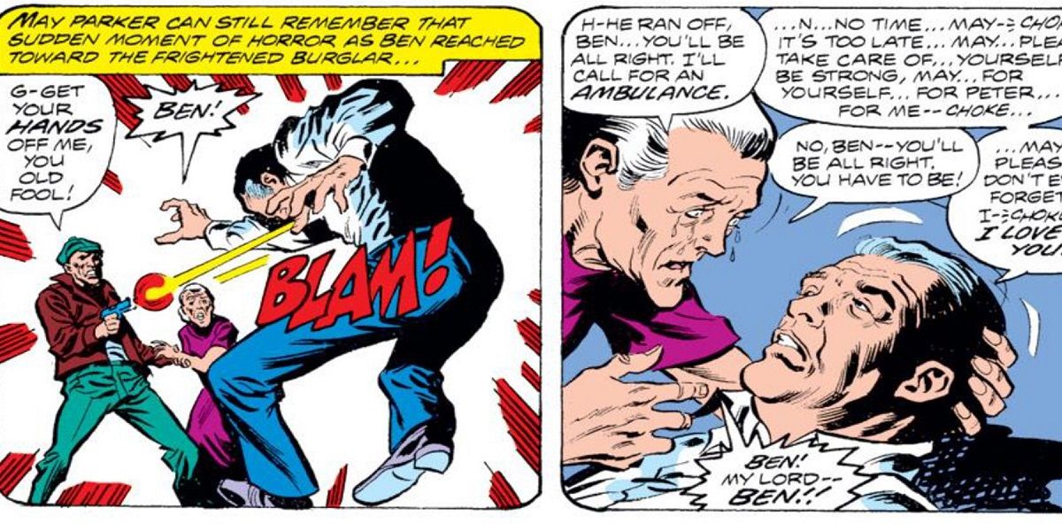 Mientras que habría un Hombre Araña sin un Tío Ben, él sería un Hombre Araña muy diferente. Peter tenía sus poderes antes del asesinato de su tío, pero los usaba para ganar dinero en vez de ayudar a otros. Esto, por supuesto, iba en contra de la creencia más importante del Tío Ben, que "con un gran poder viene una gran responsabilidad". Lamentablemente, fue necesario que la muerte del tío Ben a manos de un criminal Spiderman decidiera dejarlo ir para que Peter entendiera lo que ese dicho significa realmente. El asesinato del Tío Ben no sólo es la mayor tragedia en la vida de Spiderman. Es la fuerza que lo impulsa.