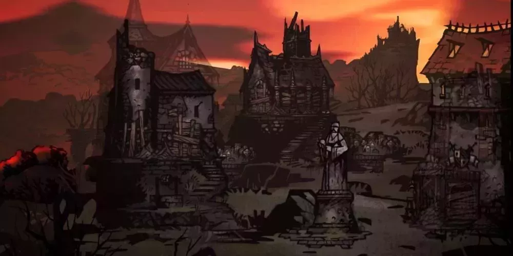 Darkest Dungeon sigue a un descendiente sin nombre del narrador del juego que regresa a la ruinosa finca de su antepasado, se entera de sus crímenes e intenta luchar contra los antiguos males que ha despertado. Esto parece marcar la diferencia, ya que la vida vuelve a la finca y los monstruos se alejan poco a poco, lo que permite al jugador asaltar la Mazmorra Más Oscura.