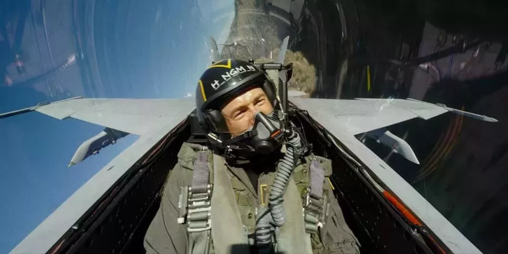 Cuando Maverick comienza a despegar en un avión hipersónico, es una escena muy tensa. Cuando adquiere una velocidad más que suficiente en poco tiempo, Maverick casi roza la cabeza del contralmirante e incluso vuela el techo de una choza cercana.