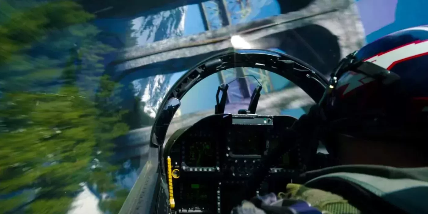 El reparto y el equipo han sido sinceros sobre sus experiencias al volar en los jets para la secuela de Top Gun . Cuando los jets se dirigen a la central eléctrica para completar su misión, los pilotos deben maniobrar a través de una cordillera. Durante este recorrido por el cañón, los jets se inclinan hacia adelante y hacia atrás, trazando una ligera curva a través de la cordillera para mantener la velocidad mientras evitan los lados del acantilado.