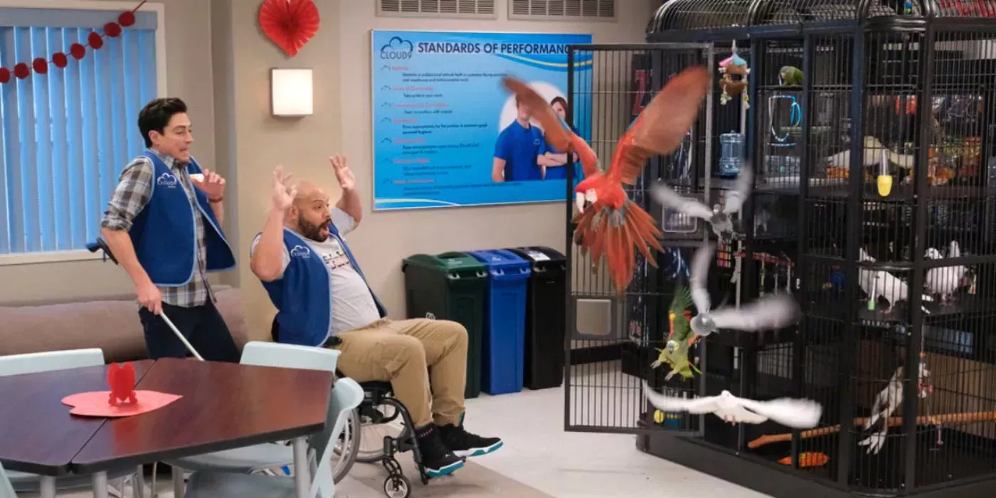Superstore sigue la vida personal y profesional del personal de la megatienda ficticia Cloud-9 en St. Jonah Simms es un rico que abandona la escuela de negocios y que empieza a trabajar en la tienda durante la primera temporada. Garrett McNeill es el locutor de la tienda que a menudo se describe a sà mismo como perezoso.