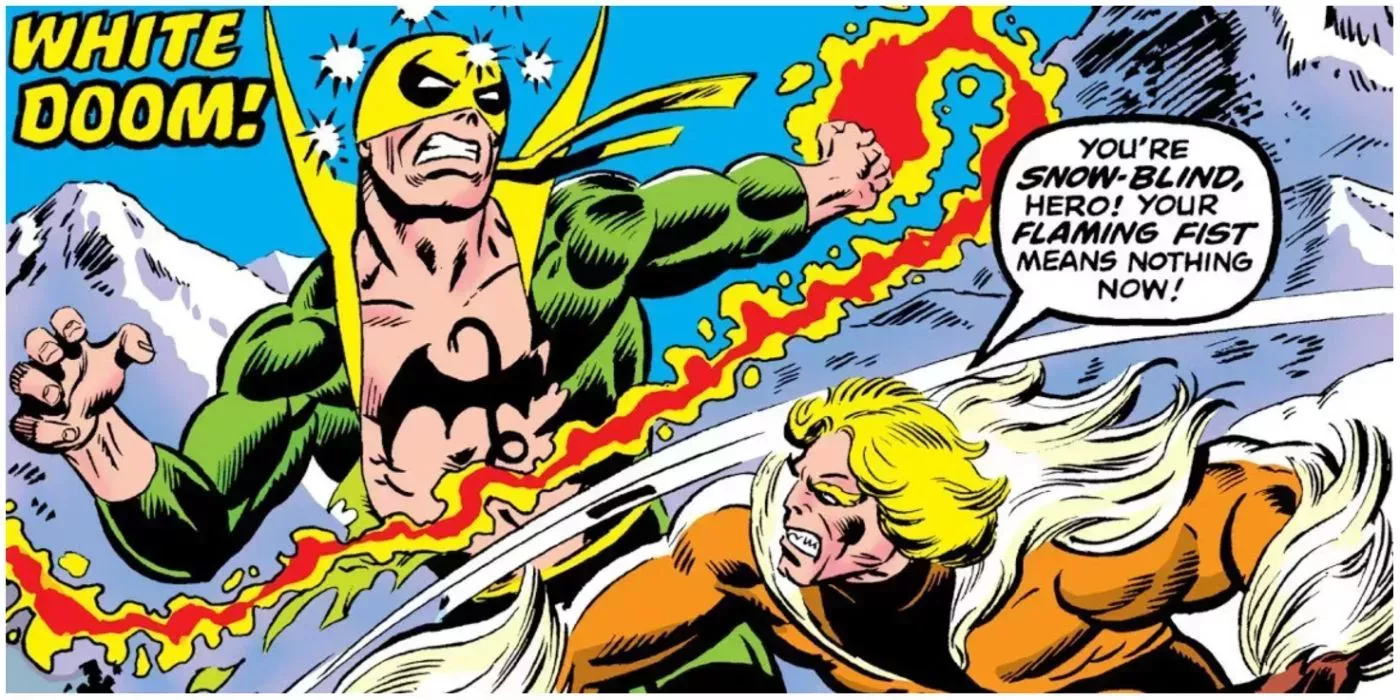 Con la esperanza de salvar a Jeryn, Puño de Hierro viajó a una montaña de Canadá y se enfrentó directamente a Dientes de Sable. La primera aparición de Dientes de Sable en los cómics de Marvel estableció el aspecto icónico y los poderes por los que se le conoce desde entonces.