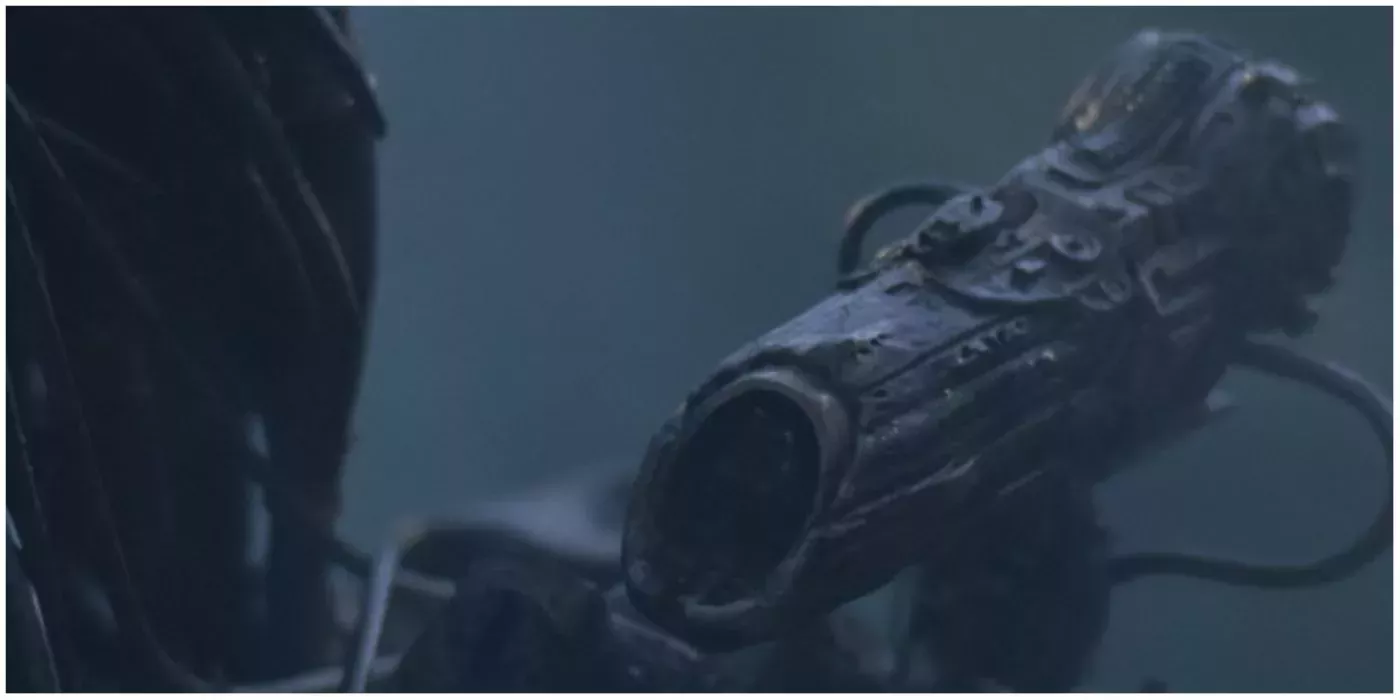 Una de las armas más brutales utilizadas por los Yautja, la Netgun apareció por primera vez en Predator 2. Se trata de un pequeño dispositivo similar a un cañón de mano que dispara una red gigante que rápidamente inmoviliza al objetivo. En Predator 2, la Netgun se utilizaba principalmente para atrapar a alguien y que el Yautja pudiera matar rápidamente a su objetivo con un ataque posterior.