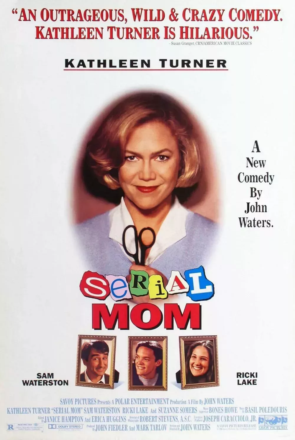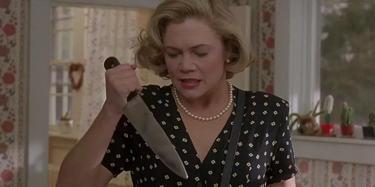 Interpretada a la perfección por Kathleen Turner, la madre asesina Beverly Sutphin acuchilla y se abre camino a golpes a través de una multitud de víctimas que rompieron las reglas que no sabían que existían. En medio de la carnicería, Beverly es una matriarca demasiado buena que adora y mima a su familia. La película es sádicamente divertida y cuenta con cameos de Patty Hearst, Traci Lords y Suzanne Somers.
