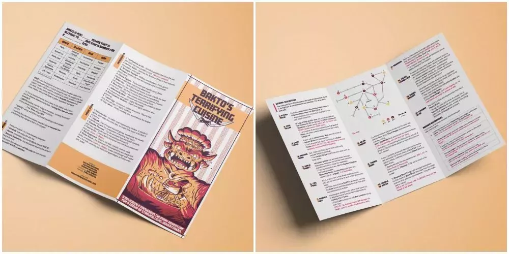 No te compliques con esta miniaventura cómica de temática gastronómica. Los personajes deben crear un plato original para complacer al demonio Bakto y asà escapar de una muerte segura. También pueden intentar deducir la alergia secreta de Bakto e intentar envenenarlo. Dado que esta aventura está escrita para ser mayormente neutral en cuanto al sistema, necesitará algunos pequeños ajustes para ser utilizada con D&D de 5E. La aventura tiene sólo dos páginas pero contiene una mazmorra de 14 habitaciones, además de varios encuentros aleatorios. La aventura imprimible, que está diseñada para plegarse como un menú de restaurante, se puede encontrar en la página itch.io de Roll 4 Tarrasque.