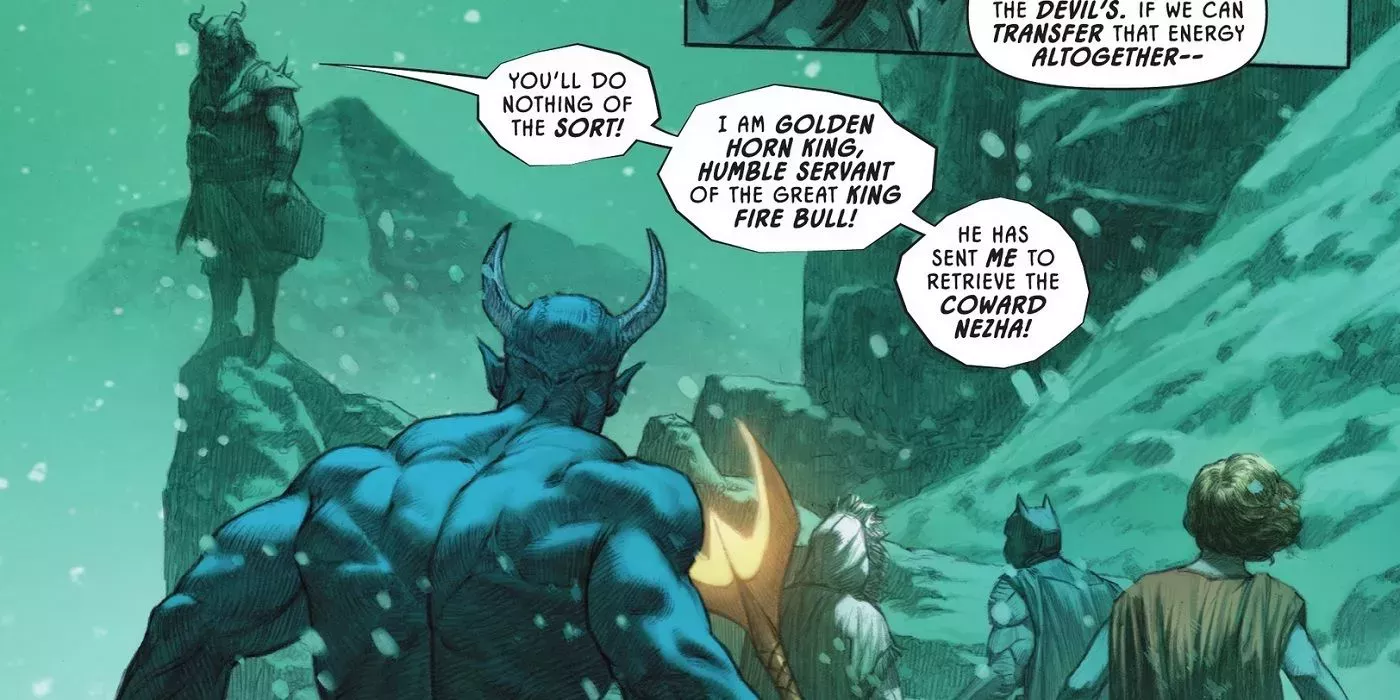 El equipo formado por Blue Devil, Supergirl, Robin, Batman y Talia al Ghul recibió el encargo de localizar al demonio Nezha con la esperanza de convertirlo en un aliado. En su camino, el equipo se enfrentó al Rey Cuerno de Oro, un villano que tenía el poder de crear miedo en los héroes.