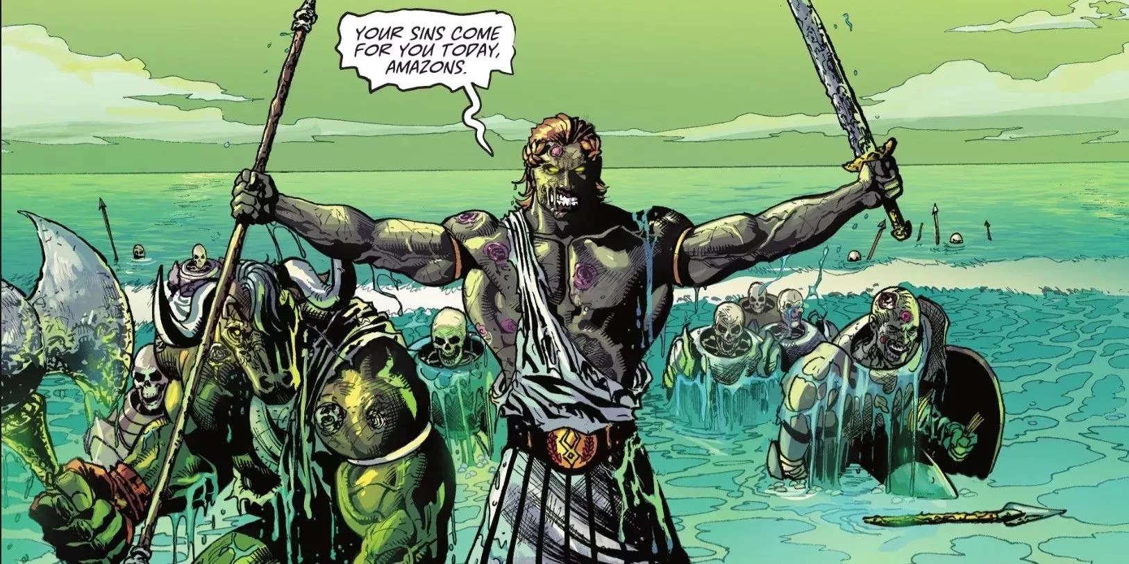 Tras escapar, Teseo los siguió hasta la superficie. Cuando la batalla fue llevada a la isla, las guerreras amazonas lucharon y derrotaron al Ejército de los Muertos. Las heroicas mujeres emergieron triunfantes sobre los guerreros no muertos, con Heracles amenazando con más.