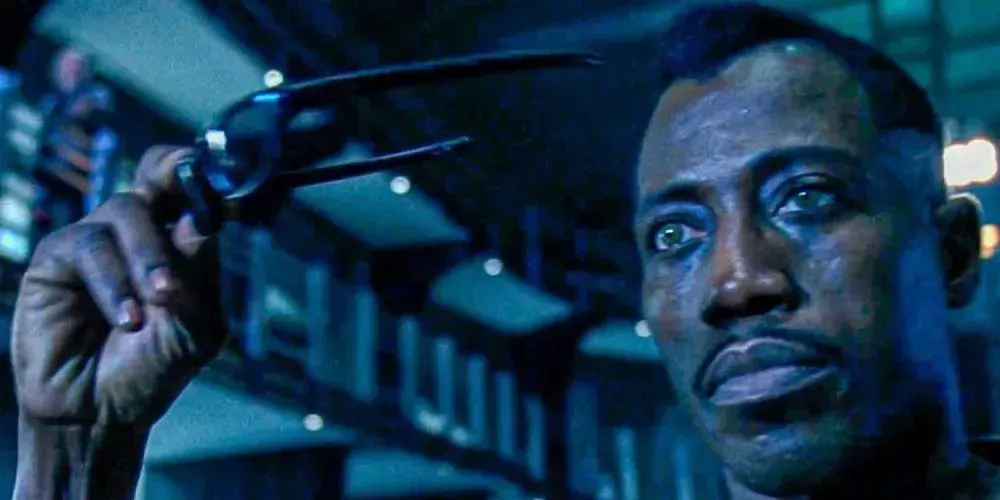 Blade II , de 2002, es un thriller repleto de acción que no pasa más de unos minutos sin una escena de acción. Sin embargo, la escena de lucha cumbre comienza cuando un Blade gravemente debilitado se da un chapuzón en un charco de sangre humana fresca. Cuando emerge, recién vigorizado, un equipo de soldados armados le rodea.