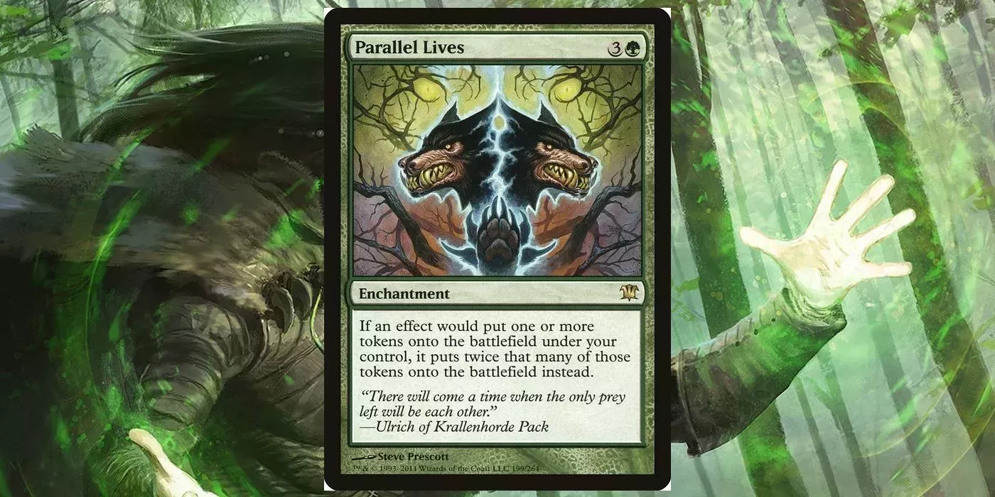 Vidas paralelas es un caro pero poderoso encantamiento verde del bloque Innistrad original de principios de la década de 2010. Vidas paralelas funciona en una gran variedad de mazos que hacen fichas de criatura, y entre todos los mazos tribales, la tribu élfica es la que más necesita Vidas paralelas.