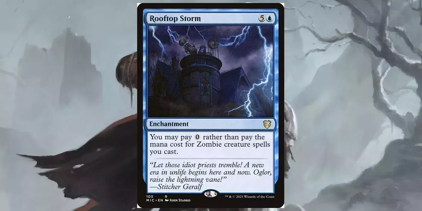 Tormenta de techo hace que todos los hechizos de criatura Zombi se puedan lanzar gratis, lo que supone una enorme ventaja en cualquier partida. Con todos esos Zombis gratuitos, el jugador puede lanzar muchas criaturas en un turno y dejar todo su maná libre para otros hechizos de apoyo y habilidades activadas.