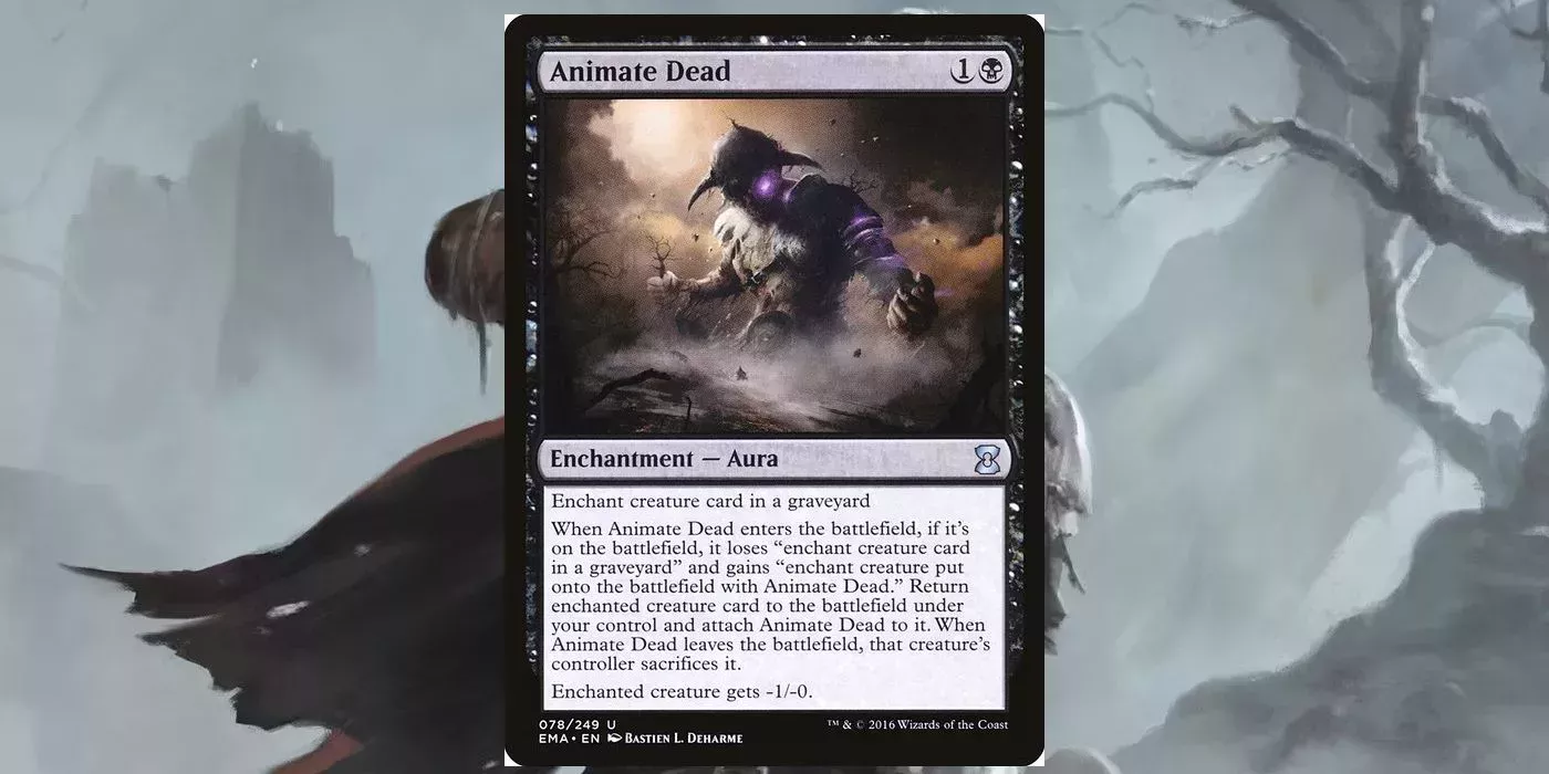 Animar muertos es uno de los primeros efectos de reanimación de MTG, y aunque su diseño parece anticuado y farragoso, es una carta eficaz que se juega hoy en dÃa. Animar muertos es un encantamiento barato pero complicado que trae una criatura del cementerio y luego la encanta.