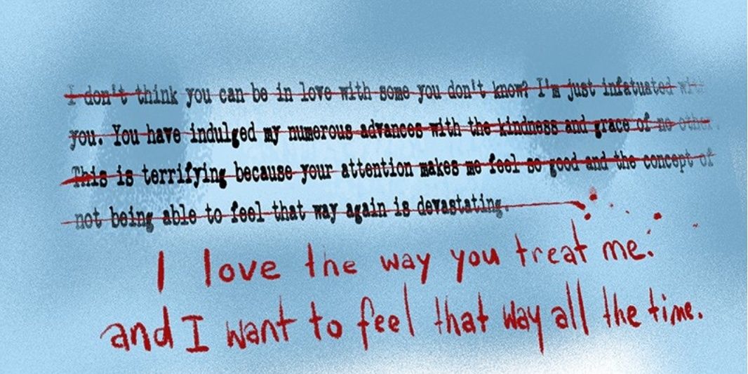 Cita completa: "Siempre supuse que enamorarse sería algo que sucedería lentamente con el tiempo... no todo a la vez."