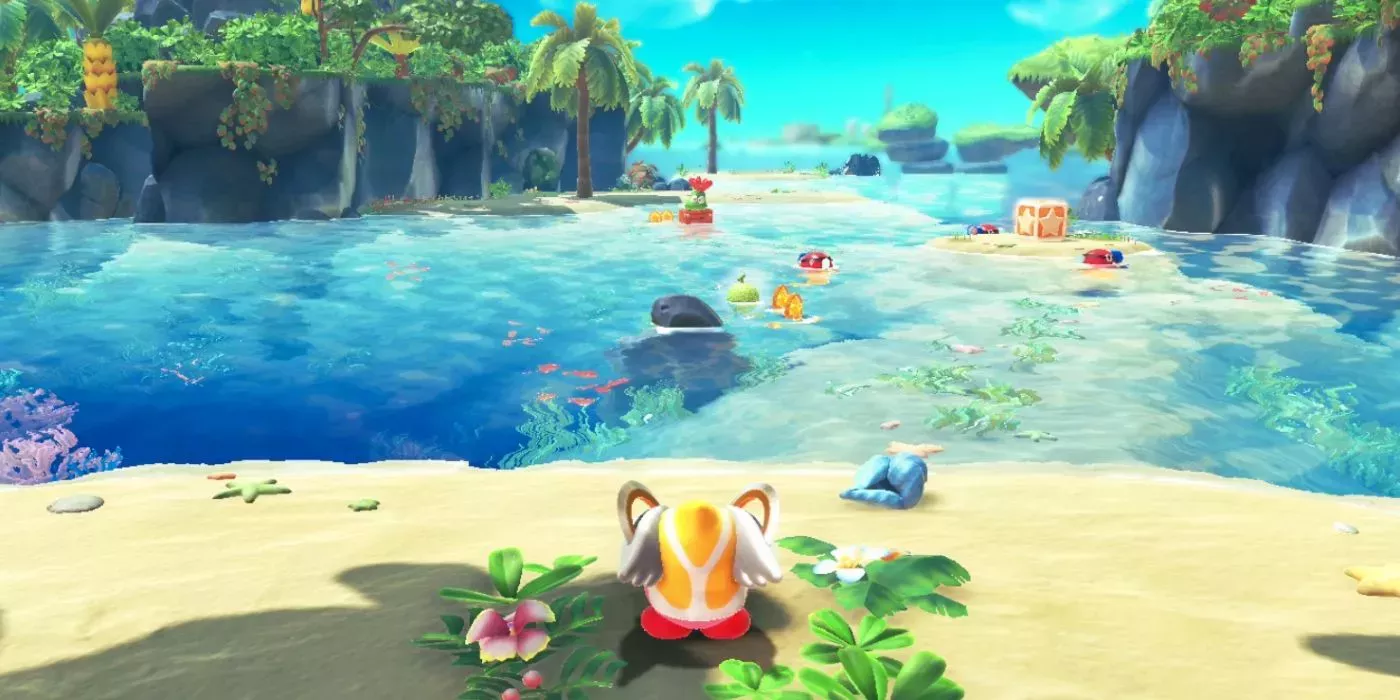 Kirby y la Tierra Olvidada traslada la experiencia de juego de Kirby a las plataformas en 3D, un salto que ha pillado a muchas franquicias con la guardia baja (los problemas de la franquicia Sonic en 3D son materia de leyenda de los juegos). Los escenarios de la demo están diseñados de forma encantadora, con una simpatía de bordes suaves que lleva la estética de los anteriores juegos en 2D al reino de las 3D.