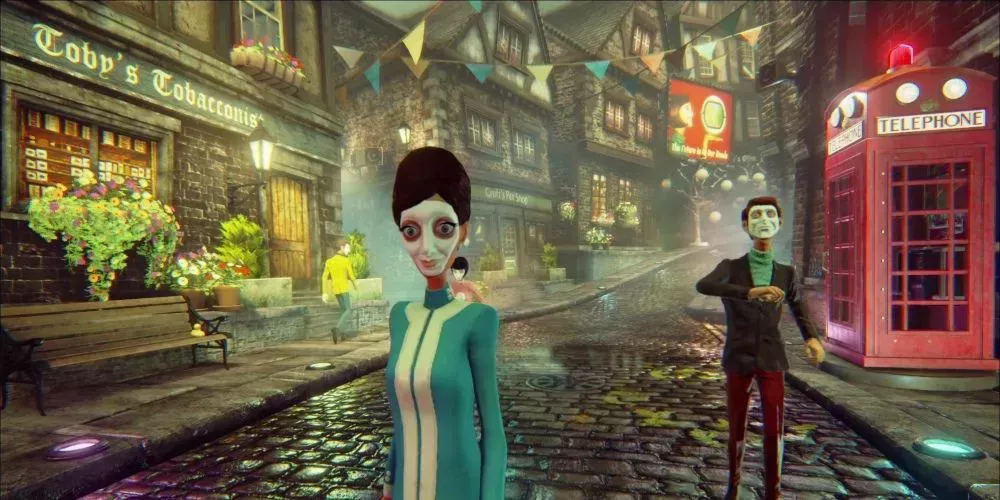 We Happy Few tiene una distopía singularmente localizada, pero no por ello menos desagradable. Se desarrolla en la ciudad de Wellington Wells, donde los ciudadanos viven en constante negación. Tras un horrible suceso de la Segunda Guerra Mundial, reprimen sus verdaderas emociones y viven en un estado perpetuo de felicidad drogada.