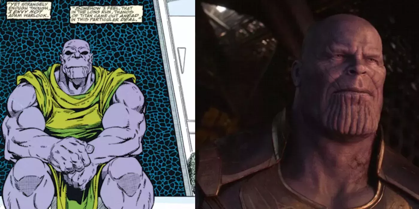 El momento final es inquietante tanto en The Infinity Gauntlet #6 como en Avengers: Infinity War. En el MCU, el triunfante Thanos de la película sonríe y el público siente horror al saber que ha acabado con la mitad de la población del universo. En el cómic, Thanos sonríe mientras acepta que la omnipotencia no es el objetivo que desea. Dos escenas casi idénticas, ambas extrañamente serenas.