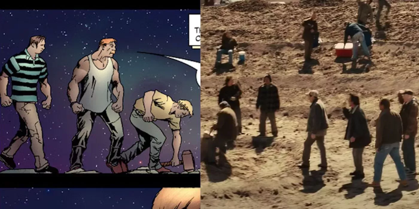 Al principio del MCU, el martillo mágico de Thor, Mjölnir, llega al desierto de Nuevo México y llama mucho la atención. Durante la película de 2011, la gente se obsesiona con él de la misma manera que cuando el destino lo dejó caer en las llanuras de Oklahoma en los cómics de 2006. La hilarante escena que muestra a los camioneros fracasando en su intento de levantar a Mjölnir procede directamente de los paneles del cómic.