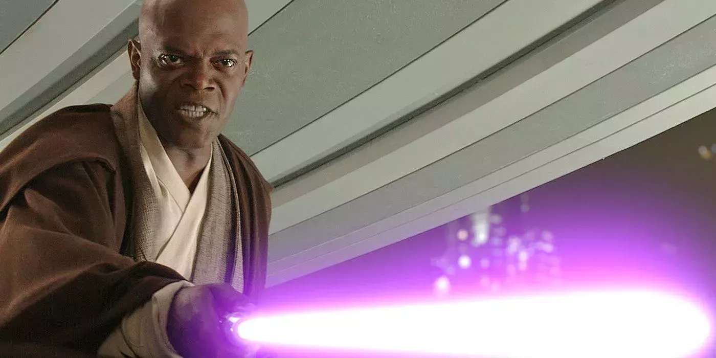Cuando se incorporĂł al reparto de la trilogĂa de precuelas como Mace Windu, Samuel L. Jackson insistiĂł en tener un sable láser de color pĂşrpura porque Ă©ste es su color favorito. En el mundo de La Guerra de las Galaxias, el sable pĂşrpura representa su zona moralmente gris como Jedi y su destreza en el combate. En cualquier caso, es tan Ă©pico como el personaje y el hombre que lo interpreta.