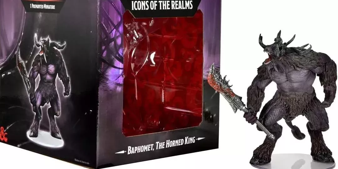 D&D Icons of the Realms ha proporcionado una figura bastante sencilla pero excelente para Baphomet. Su figura está erguida y ruge con fuerza, mientras sostiene su arma Heartcleaver manchada de sangre a su lado. Su figura no viene con ningún terreno, pero un DM ingenioso puede encontrar otros objetos para representar los muros de piedra que Baphomet puede hacer con sus hechizos.