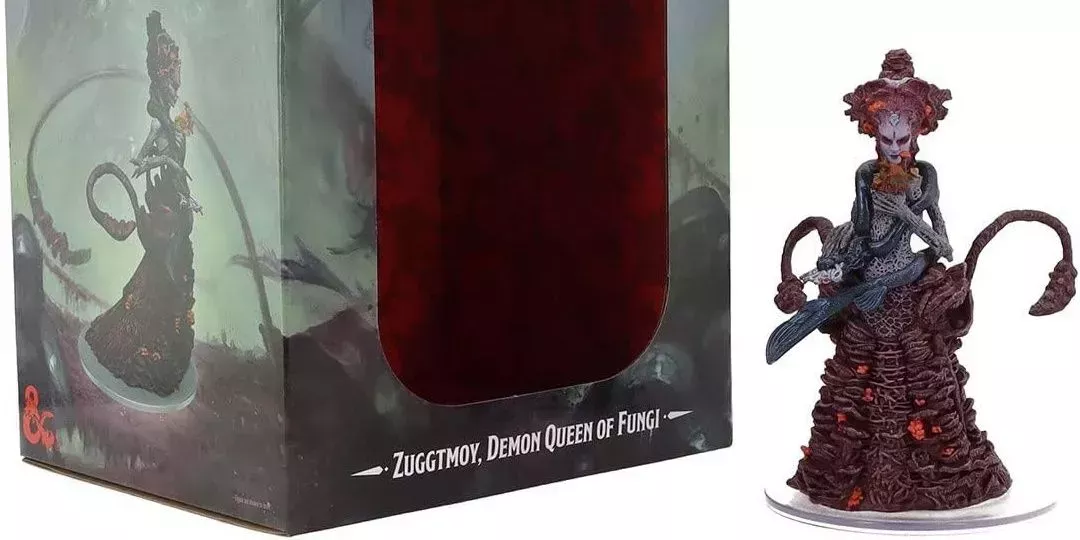 La figura Iconos de los Reinos de D&D de Zuggtmoy es un poco pequeña pero merece la pena si un DM quiere lanzar a Zuggtmoy a su grupo durante una campaña de Abismo de alto nivel. La figura de Zuggtmoy tiene una bata de hongos muy detallada para proporcionar una base estable, y la figura también tiene dos tentáculos de hongos que son lo suficientemente flexibles como para que no se rompan con demasiada facilidad si se tocan.