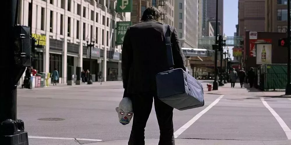 Para cuando el dinero está recogido y el vehículo de huida ha llegado, el Joker es el único superviviente. Antes de marcharse, se enfrenta al desafiante director del banco que cuestiona sus creencias. Al desenmascararse, el Joker pronuncia la frase anterior antes de burlarse y dejar al director con una granada de humo.