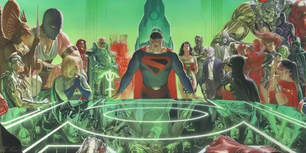La serie Elseworlds Kingdom Come fue una obra maestra. Alex Ross pintó una Liga de la Justicia del futuro luchando contra una marea de antihéroes violentos. Esto enfrentaba a la Liga con el grupo de héroes menos divinos de Batman. Luthor también estaba allí, corrompiendo al Capitán Marvel.