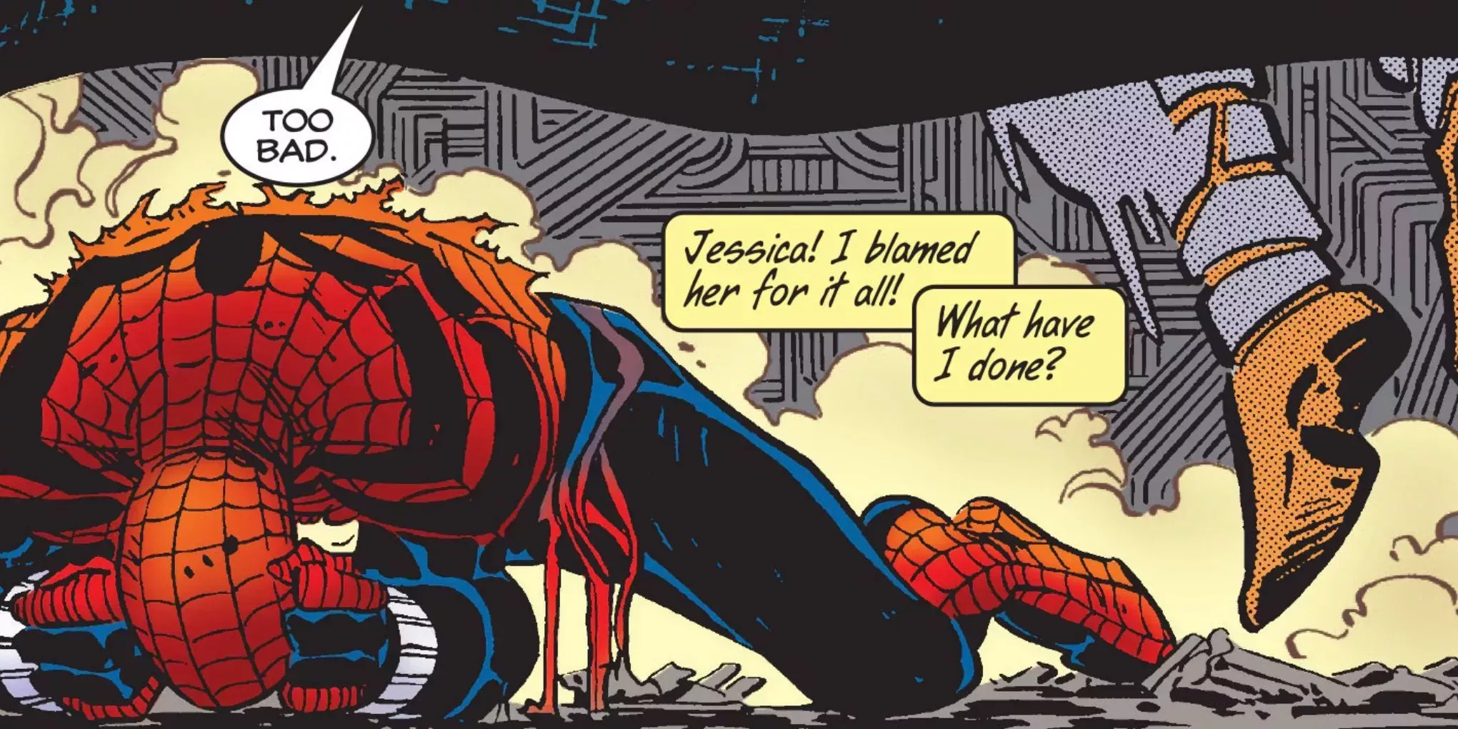 Cuando Peter Parker descubrió que su mujer estaba embarazada y "se enteró" de que no era más que un clon del auténtico Spiderman, optó por colgar las telarañas y mudarse a Portland para criar a su familia en paz. En la miniserie de 4 capítulos Spider-Man: The Final Adventure (Fabian Nicieza, Darick Robertson, Jeff Albrecht, Bill Oakley), Peter encontró trabajo en un centro de investigación, pero mientras intentaba tratar a un paciente terminal, creó sin querer un monstruo con forma de telaraña llamado Tendril. Fue fascinante ver a Peter desenvolverse en un entorno urbano totalmente distinto al que estaba acostumbrado y trabajar para detener a un nuevo villano que él mismo ayudó a crear.