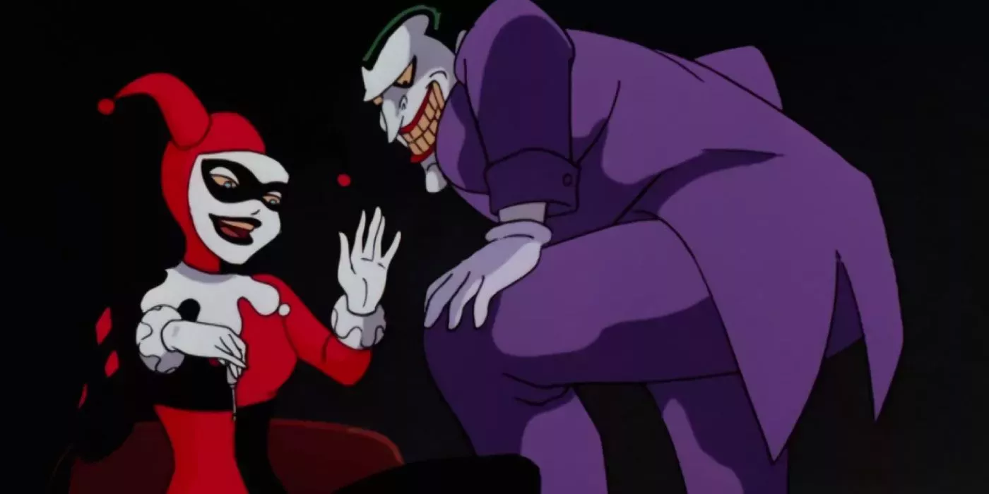Mad Love (Paul Dini, Bruce Timm, Glen Murakami, Tim Harkins y Rick Taylor) fue originalmente un cómic publicado a finales de 1993 durante las dos primeras temporadas de Batman: The Animated Series. Cuando The New Batman Adventures reinició la serie en 1997, Dini y Timm adaptaron la historia y consolidaron los orígenes de Harley como supervillana. Desde entonces, se ha convertido en canon para la mayoría de las versiones del personaje: comienza como una ambiciosa psiquiatra en Arkham, para caer rendida ante el Joker y adoptar una nueva personalidad como devota secuaz.