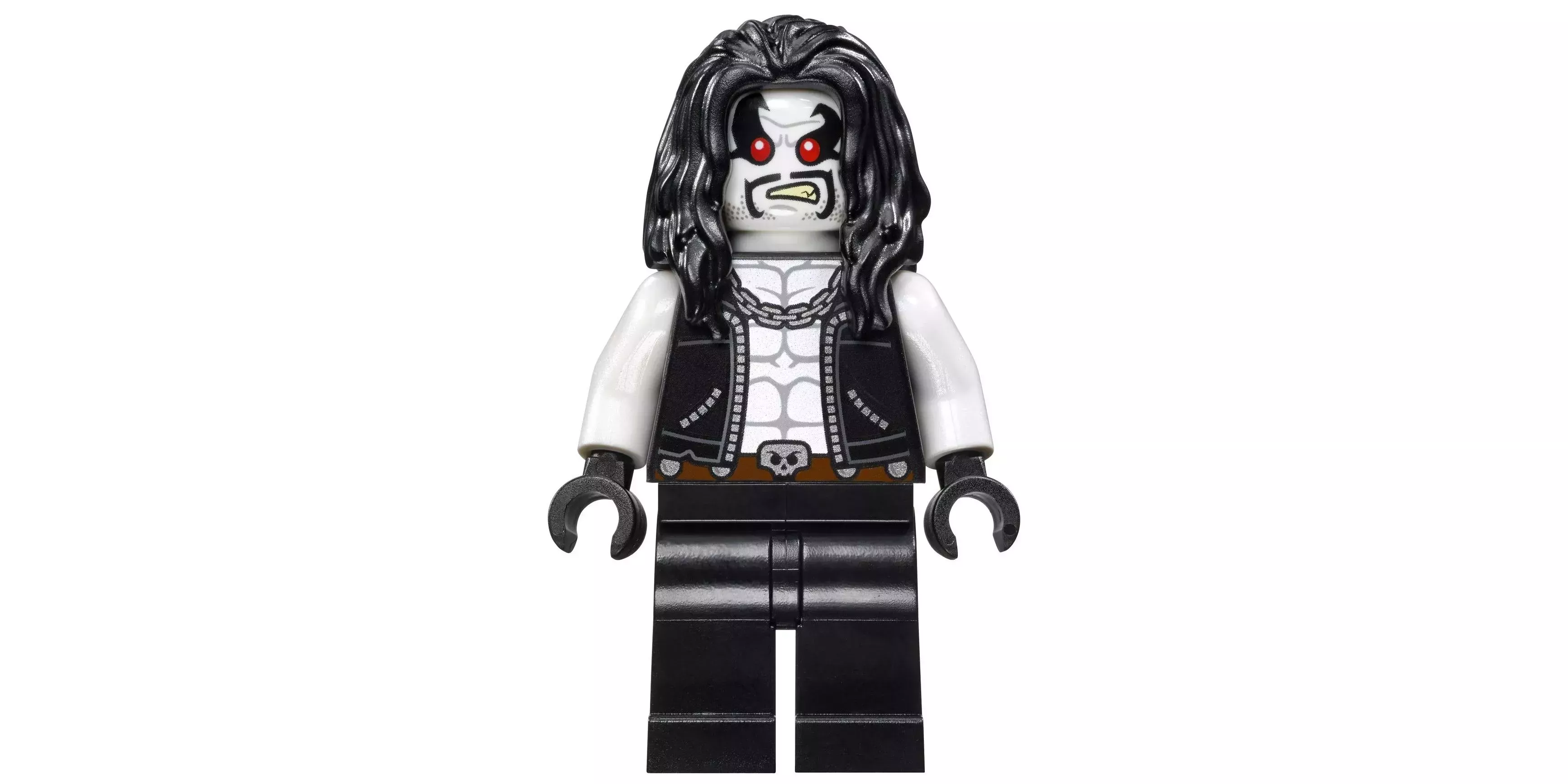 La minifigura de Lobo está maravillosamente detallada hasta la cremallera metálica. Los diseñadores de LEGO incluso imprimieron "The Main Man" en la parte trasera de su chaleco de cuero. Curiosamente, el pelo de la minifigura cubría esa impresión, pero los diseñadores se sintieron obligados a incluirla de todos modos.