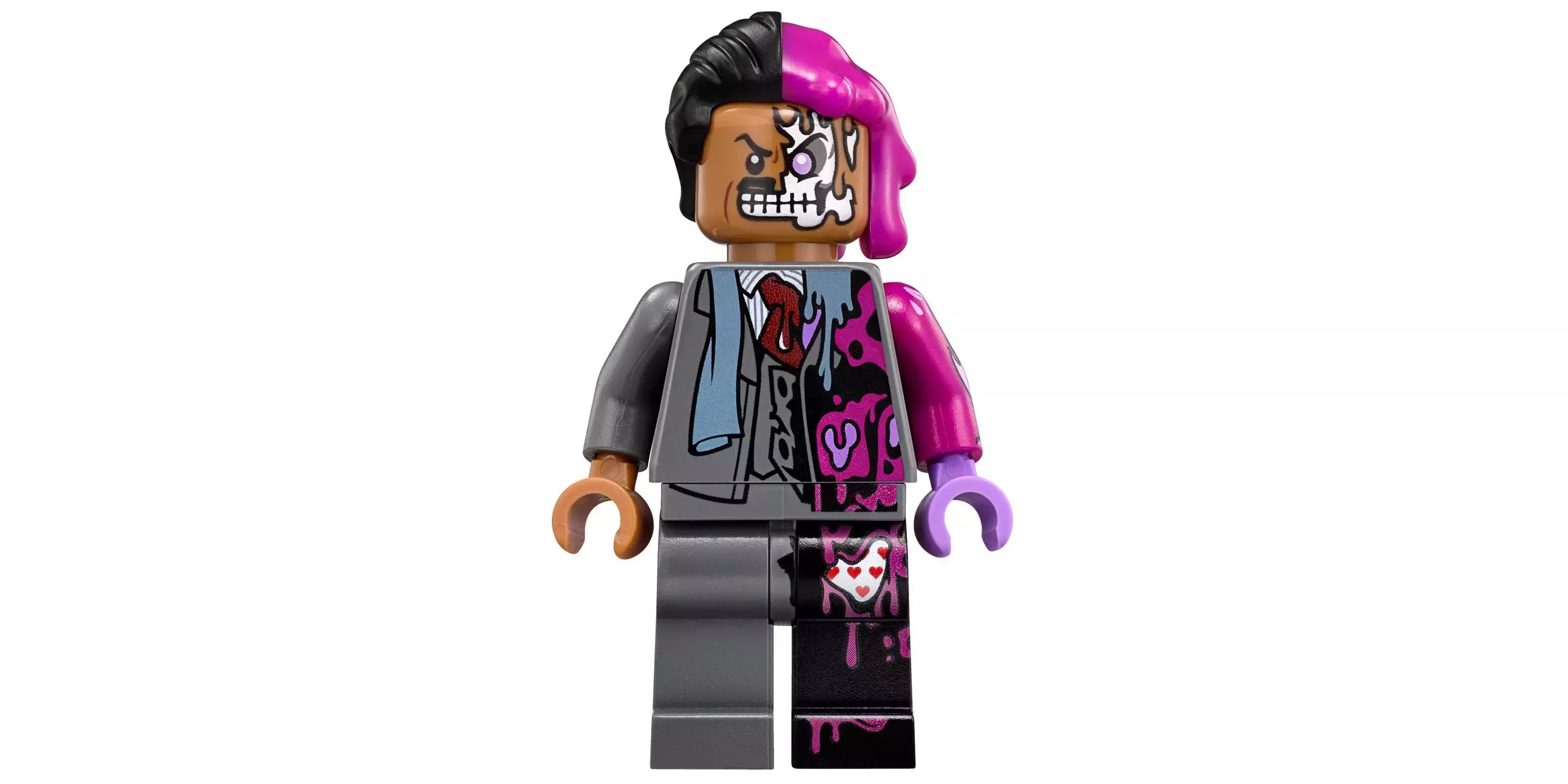 Pero muchos años después, Williams por fin pudo interpretar a Dos Caras, aunque en forma de LEGO, en La película de LEGO Batman. Como para compensar los muchos, muchos años de espera, el equipo de LEGO diseñó la mejor minifigura de DC de todo su catálogo. El Billy Dee Dos Caras es horripilante y cómico a partes iguales, con un poco de la clásica calavera de LEGO asomando entre la carne destrozada, una bufanda medio derretida y una pizca de ropa interior cubierta de corazones. La figura mantiene incluso la llamativa estética morada que tenía la versión de Jones. Han tenido que pasar 22 años, pero los fans por fin han podido ver el aspecto que habría tenido Dos Caras si Forever se hubiera mantenido fiel al casting de Burton.