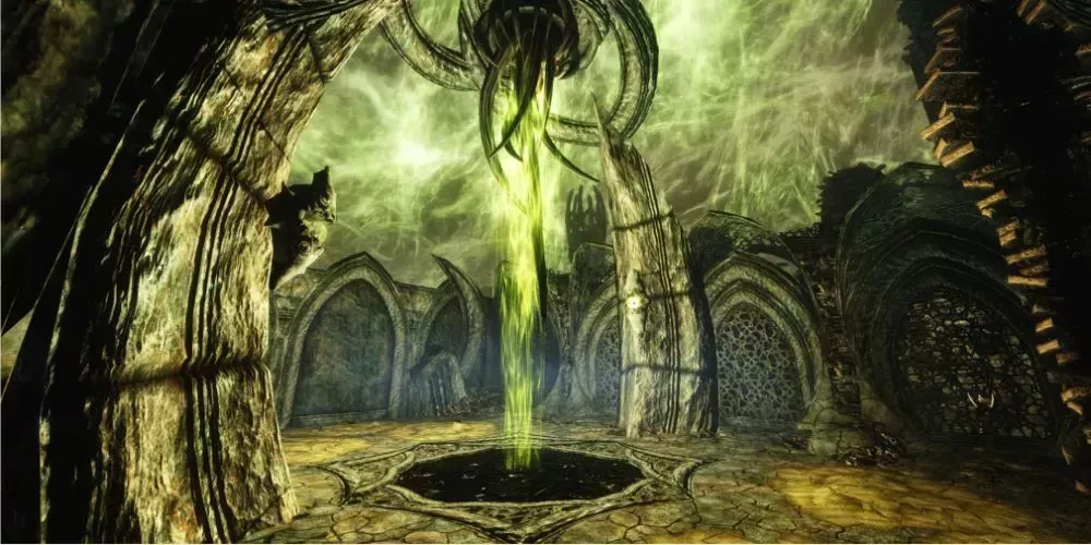 Hermaeus Mora, el príncipe daédrico del conocimiento y la memoria, teje sus zarcillos a lo largo de los acontecimientos del último DLC de Skyrim. A través de los Libros Negros que ha esparcido por Solstheim, es capaz de transportar a los Dovahkiin a su reino: el plano de existencia lovecraftiano conocido como Apocyrpha.