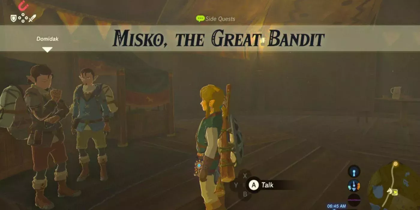 La gran cantidad de botín que se puede conseguir en "Misko, el gran bandido" la convierte en una de las mejores misiones secundarias. Los jugadores pueden encontrar a los cazadores de tesoros Prissen y Domidak en los establos de Duelling Peak. A cambio de 1.000 rupias, informarán a Link del supuesto paradero del tesoro del gran bandido Misko en forma de acertijo.
