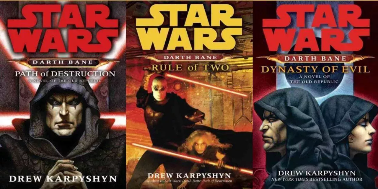 Las novelas de Star Wars Legends están llenas de importantes personajes originales, pero pocos pueden igualar el impacto de Darth Bane en la historia galáctica. Bane fue mencionado por primera vez en la novelización de La amenaza fantasma, pero tuvo su propia trilogía de novelas a cargo del autor Drew Karpshyn. Path Of Destruction, Rule Of Two y Dynasty Of Evil cuentan la historia del legendario Sith que rompió y reconstruyó la Orden Sith.