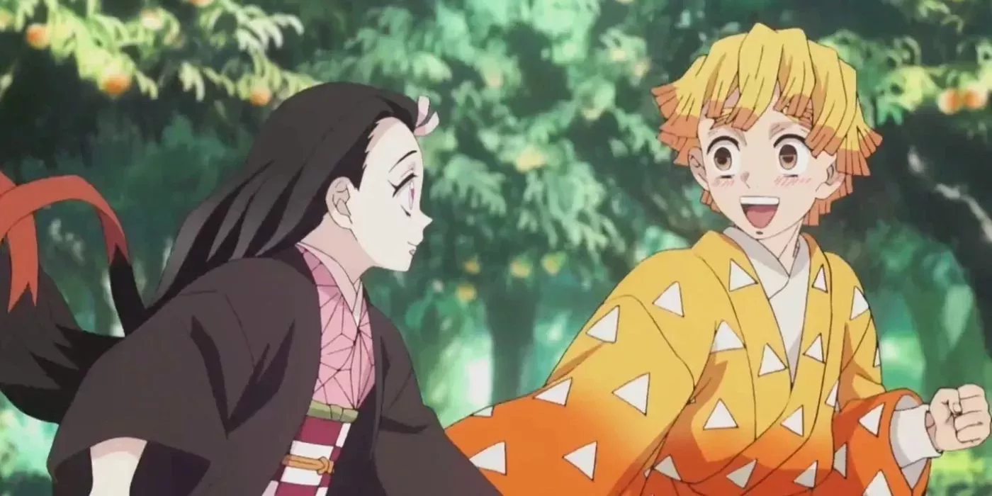 Zenitsu no puede resistirse a Nezuko a pesar del miedo que siempre ha tenido a los demonios. Tras enamorarse de Nezuko, Zenitsu le pide constantemente que se case con él, pero se encuentra con una graciosa negativa tras otra. Con el tiempo, Zenitsu se vuelve más maduro y menos agresivo y empieza a impresionarla con historias de sus ejercicios de entrenamiento con Tanjiro.