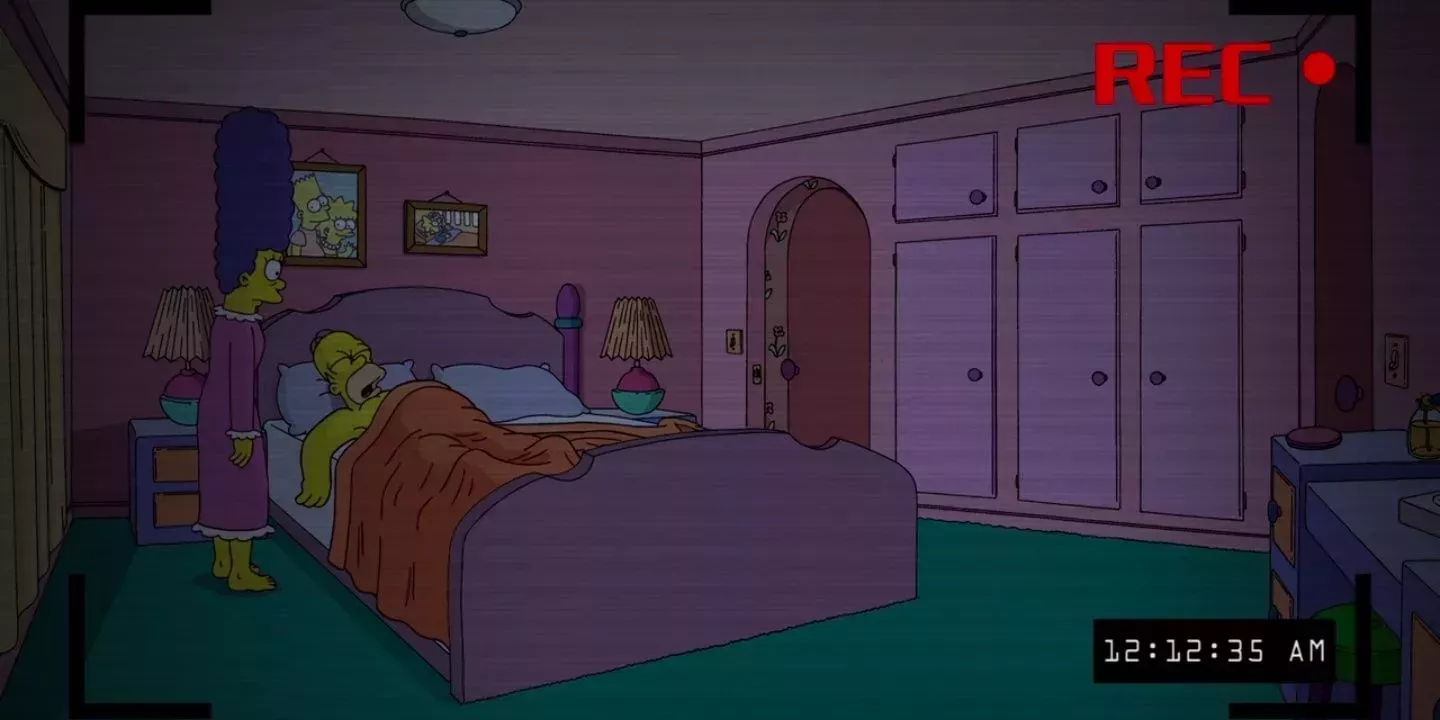 En "Actividad anormal", Homer consigue una videocámara para captar las cosas extrañas que empiezan a suceder en plena noche. El calvo protagonista graba a Marge y a él mismo durmiendo en el dormitorio y, tras la primera noche, Homer insiste en instalar varias cámaras por la casa.