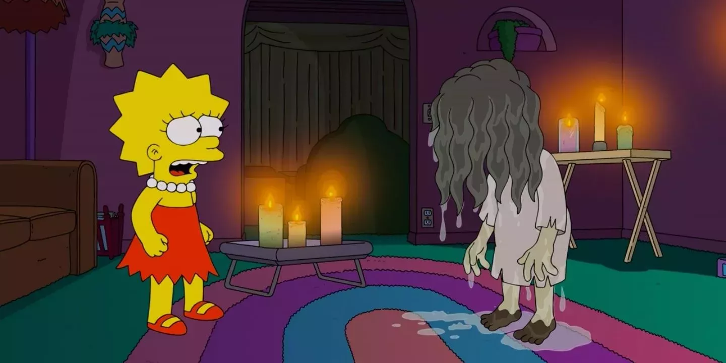 Cuando Lisa se arma de valor para ver el vídeo embrujado de TikTok por sí misma, responde al teléfono que suena y se enfrenta a la persona que llama. Con valentía, llama cobarde a la asesina y exige que la maten inmediatamente. Es entonces cuando la icónica escena de The Ring se replica en la casa de los Simpsons, y la terrorífica niña sale de la pantalla del televisor. Por muy cliché que sea, es una versión moderna de un clásico del terror muy querido.