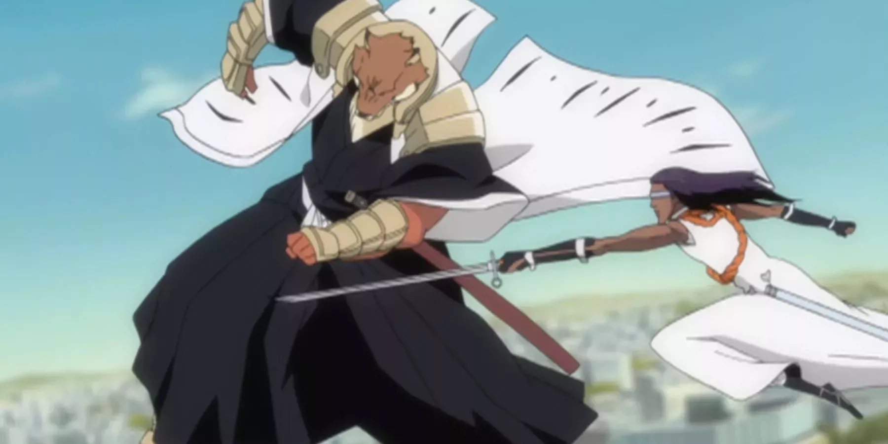 7 Soi Fon y Hachigen Ushoda contra Baraggan Luisenbairn fue una batalla desesperada contra la propia muerteEl 2º Espada, Baraggan Luisenbairn, tenía una habilidad casi infalible. Podía envejecer y pudrir rápidamente cualquier cosa o persona que entrara en su aura de corto alcance, lo que significaba que el Capitán Soi Fon del escuadrón 2 no tenía forma de hacerle daño. Sólo acercarse significaba que los huesos de Soi Fon envejecerían y se romperían, y su Teniente tampoco tenía una solución en mente. Ni siquiera el bankai de Soi Fon podría salvar el día.