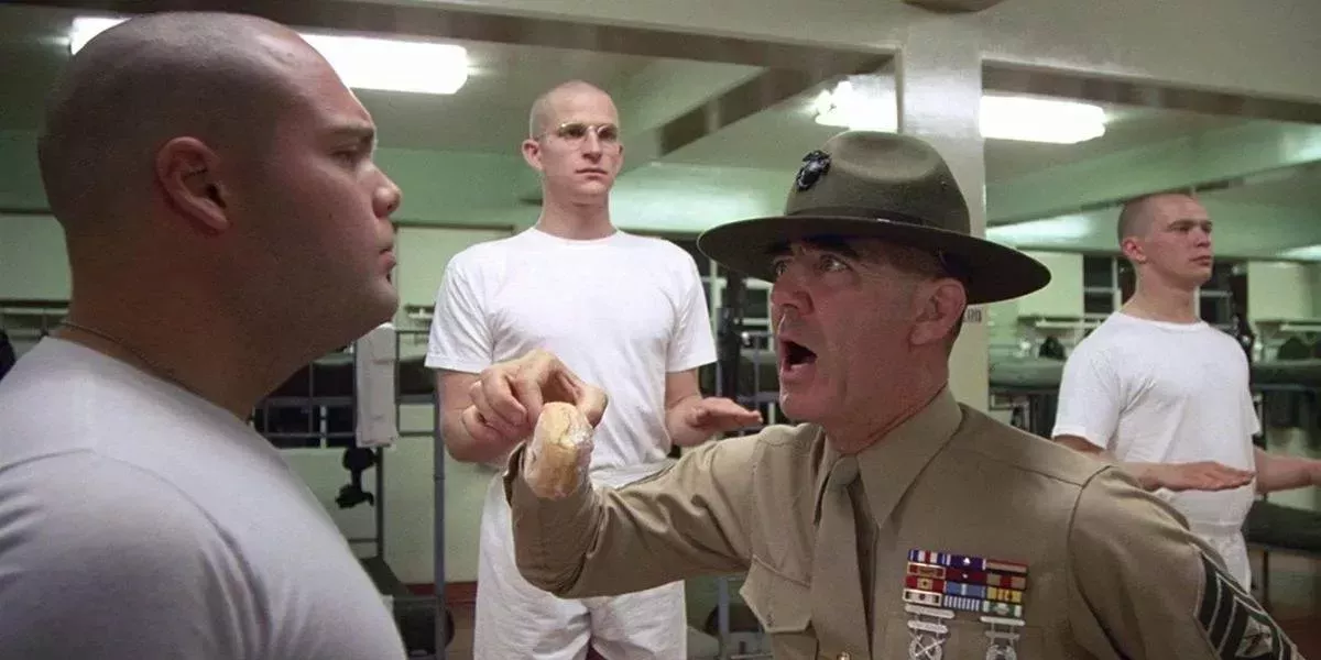 La Chaqueta Metálica es una exploración de los efectos del militarismo y de la guerra en los individuos, con su impacto más duradero derivado del soldado Pyle. El comportamiento de Pyle, un recluta indisciplinado y con sobrepeso, provoca la ira de Hartman, que impone un castigo colectivo a los demás soldados. Aunque las escenas ambientadas en Vietnam son excelentes, la película destaca por la interpretación que hace R. Lee Ermey del implacable sargento instructor, que resulta aún más auténtica por la permanencia del actor en el papel.