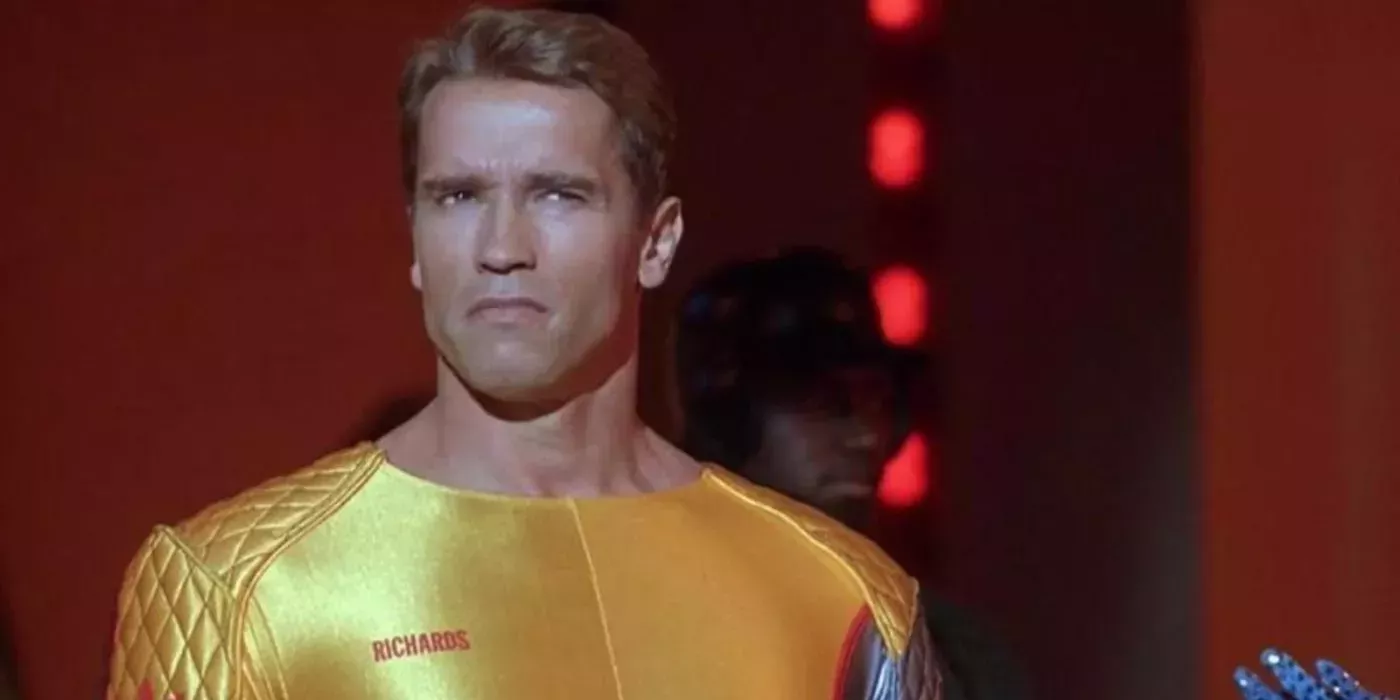 En otro clásico distópico, The Running Man, Arnold Schwarzenegger interpreta a un ex policía en un concurso de televisión para convictos que quieren luchar por su libertad en un torneo a muerte. Teniendo lugar en un estado policial gobernado por los Estados Unidos en el año 2019, Schwarzenegger es Ben Richards, un hombre encarcelado injustamente que se negó a abrir fuego contra una multitud de manifestantes pacíficos y hambrientos y que fue inculpado de su asesinato.