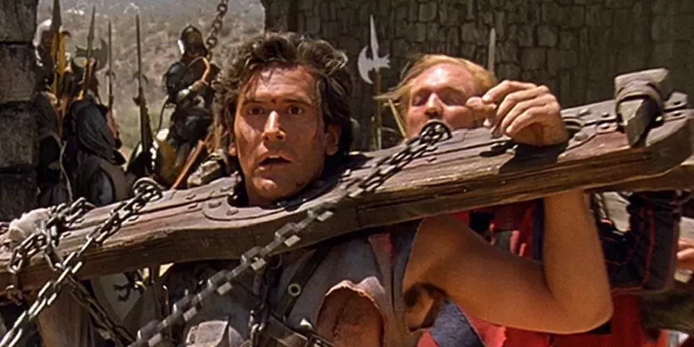 La tercera película de la trilogía de Evil Dead, El ejército de las tinieblas, es una locura absoluta de la forma en que sólo Sam Raimi podía hacerlo. La película tiene el mismo ambiente de comedia chiflada que las dos primeras, pero con un presupuesto mayor. Lamentablemente, el factor de impacto es menor simplemente por sus activos reutilizados.