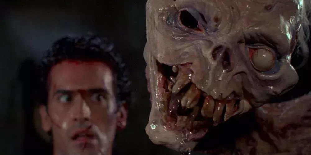 Evil Dead II es más un remake que una secuela, reutilizando los elementos de The Evil Dead, pero con un mayor presupuesto y un Raimi más seguro y divertido al frente. Los personajes difieren de los de la primera película, pero Ash Williams es esencialmente el mismo, pero con una personalidad más caricaturesca que estaría plenamente presente en Army of Darkness. Ahora está en su plena forma: un arrogante y bocazas fanfarrón que el público adora.