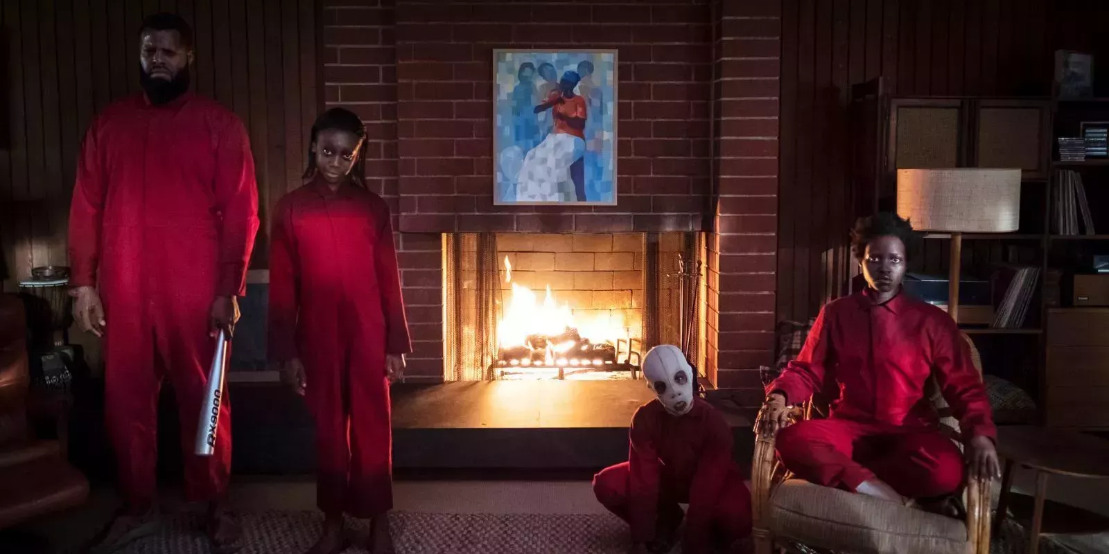 Us , de Jordan Peele, se centra en una familia que se va de vacaciones y se encuentra con versiones idénticas, aunque siniestras, de sí misma, conocidas como los Tethered, que viven bajo tierra y reflejan las vidas de los que residen arriba. Los doppelgangers ejercen la violencia sobre sus homólogos como una forma de crear una reforma, creyendo que han vivido vidas injustas a expensas de los de arriba.