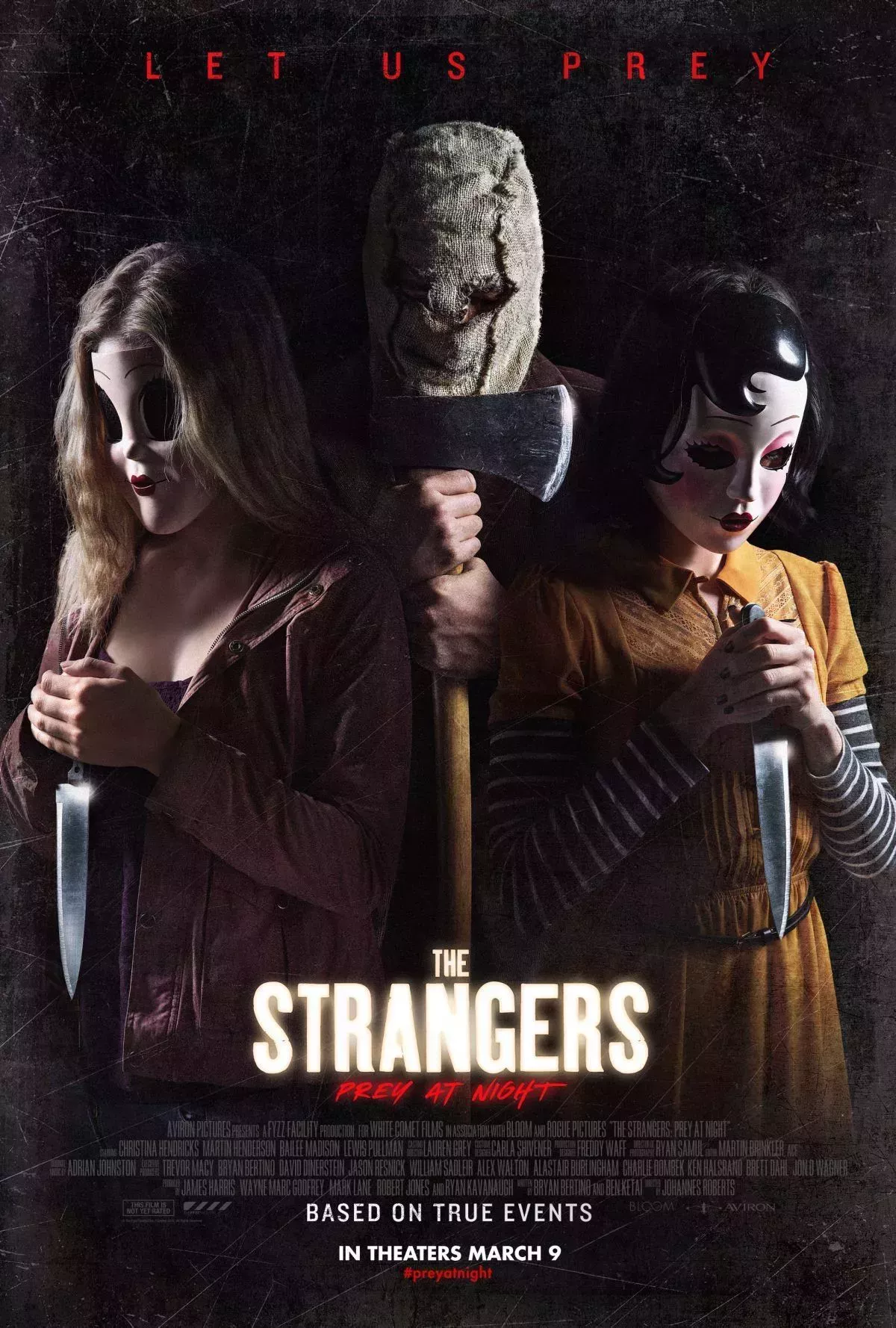 Los Extraños: Prey at Night sirve como secuela de la película original de 2008, esta vez siguiendo a una pequeña familia en un parque de caravanas. Cuando una familia llega para sus vacaciones, encuentran a los encargados asesinados, y pronto son acechados por el trío de asesinos en serie enmascarados: Dollface, Pin-Up Girl y Man in Mask.