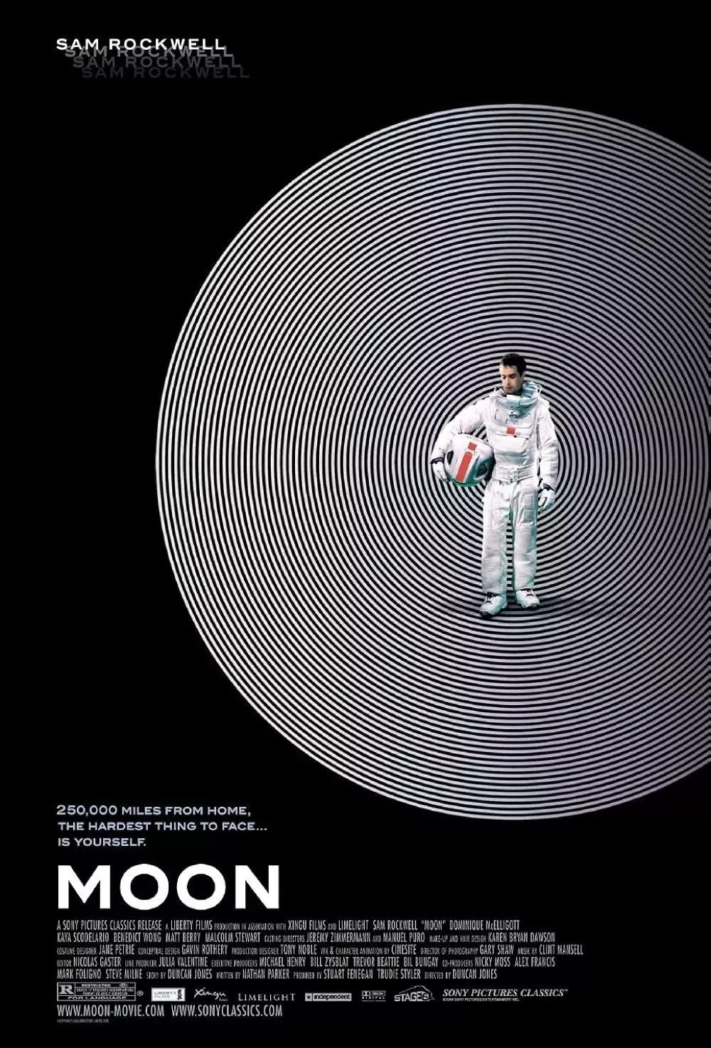 Duncan Jones, hijo de David Bowie, debutó como director de largometrajes en 2009 con la película de ciencia ficción de bajo presupuesto Moon. Sam Rockwell interpreta a Sam Bell, el único trabajador de una planta de combustibles alternativos en la Luna. A Bell, que trabaja junto a GERTY, un ordenador de inteligencia artificial, sólo le quedan tres semanas de su contrato de tres años. Tras estrellar su vehículo, Bell descubre que, después de todo, puede que no sea el único en la Luna.