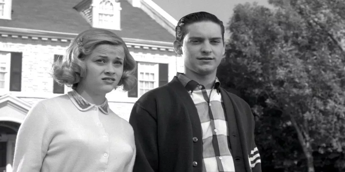 Pleasantville parte de una premisa muy sencilla: dos adolescentes de los años 90 se encuentran atrapados en un mundo de comedia de los años 50. La película está protagonizada por Reese Witherspoon y Tobey Maguire como los hermanos que saltan en el tiempo.