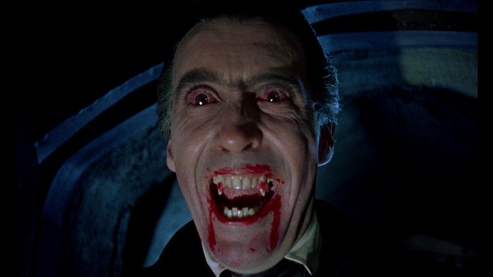 - ‘Drácula’, de Terence Fisher: Me refería al vampiro “hammeriano”, y es que debemos agradecer a la productora Hammer Films muchas de nuestras agradables pesadillas. Cada película fruto de ese estudio es hoy una pieza de culto para el aficionado al género de terror, y esta adaptación por parte de Terence Fisher de la obra de Stoker es una de las películas más emblemático del legendario Conde de los Cárpatos. Frente al Van Helsing interpretado por Peter Cushing nos encontramos la imponente figura de un Drácula interpretado por Christopher Lee, haciendo del vampiro un seductor depredadora cuya mirada carmesí en su secuela (‘Drácula, el Príncipe de las Tinieblas’) le robaría el sueño más de una noche a quien esto escribe.