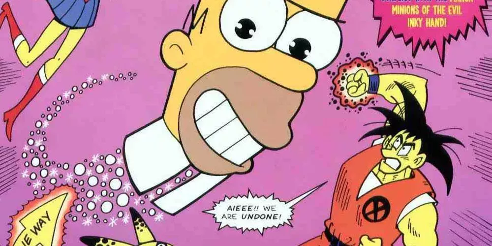 A veces, tanto un anime popular como una parodia del mismo pueden coexistir en el teseracto que es Springfield. Los Simpson no sólo existe como serie de animación, sino también en los cómics y los juegos. En estos medios también aparecen ocasionalmente gritos de anime.
