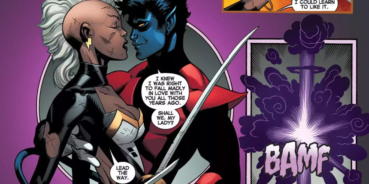 Tormenta y Rondador Nocturno nunca han sido pareja oficial en los cómics de los X-Men, pero han coqueteado y se han amado con fuerza desde que se unieron al equipo. Los guionistas y artistas han insinuado algo más que flirteo, como cuando Tormenta esperaba a Rondador Nocturno a la salida de su ducha, o cuando se abrazaron antes de teletransportarse. Quizá algún día Kurt y la poderosa ex líder de los X-Men exploren su química a un nivel más profundo.