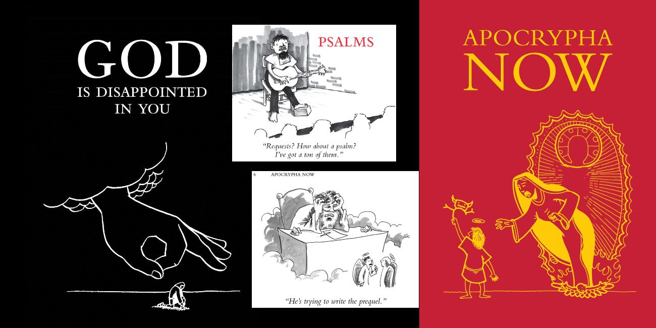 Las novelas gráficas originales God Is Disappointed (2013)en You and Apocrypha Now de Russell y Shannon Wheeler's(Too Much Coffee Man), enfoques fieles pero irreverentes de estos textos religiosos. Emparejando las irreverentes interpretaciones en prosa de Russell de los textos sagrados con los humildes dibujos animados de un solo panel de Wheeler proporciona a los lectores una narrativa cómica pero convincente. Estas narraciones aparentemente irreverentes de las historias de la Biblia van directo al corazón y a los huesos, traduciendo estos libros en términos que permiten a los lectores modernos no sólo entender sino también disfrutar.